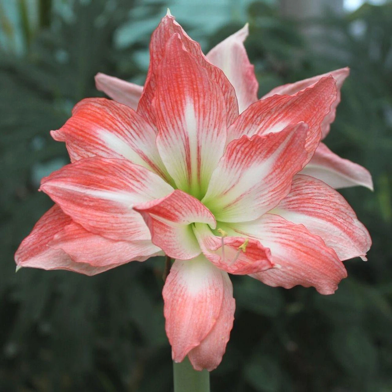 This amaryllis is a color-changer that will entertain you from start to finish. When the blossoms first open, the petals are mostly white with a fine red outline. As they mature, the color intensifies, gradually blushing to pink, coral and salmon. The fully double flowers are extra large and elegant.