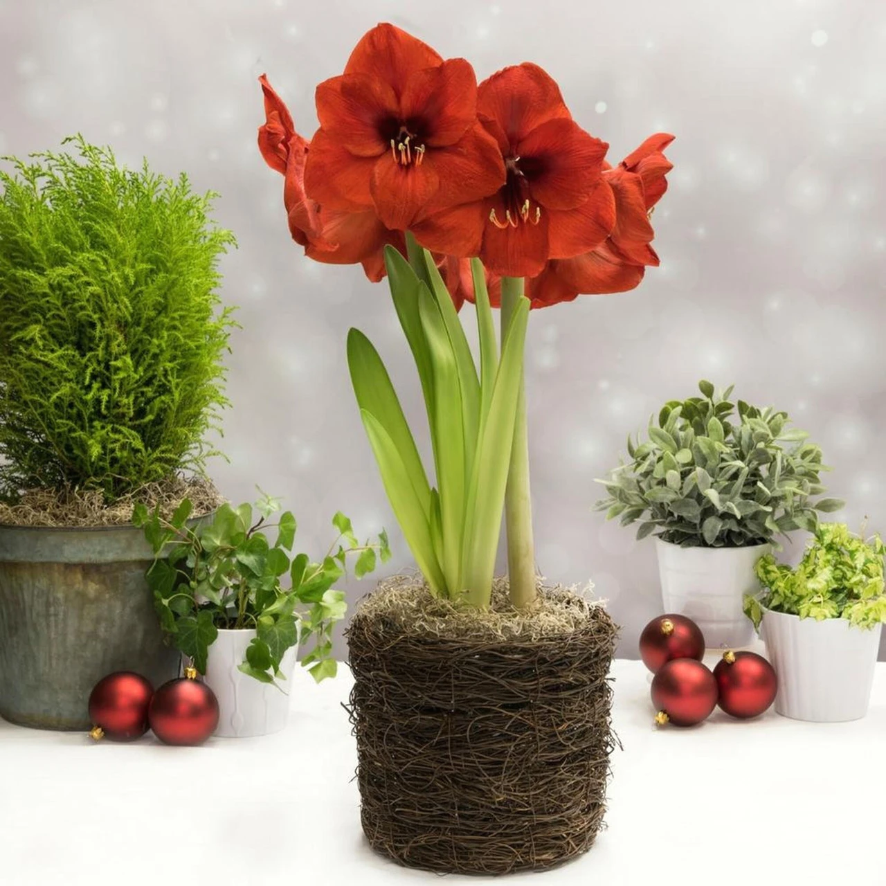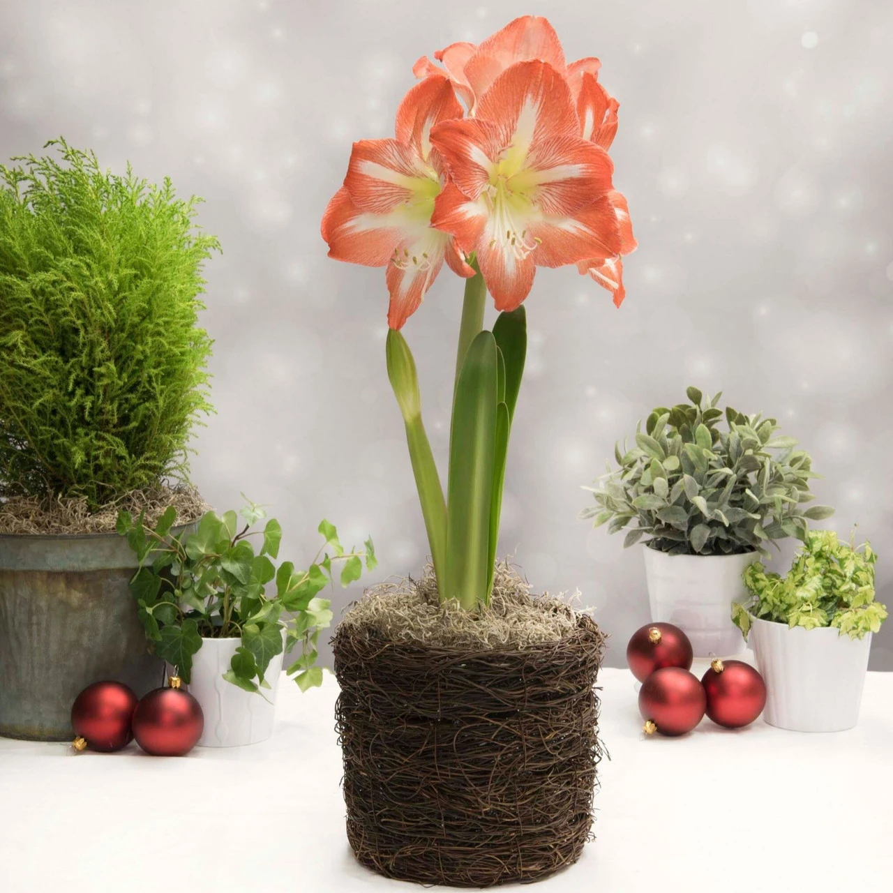 Nature lovers will adore this earth-friendly container made of woven twigs. Pair it with the amaryllis variety of your choice for an all-in-one kit that’s guaranteed to please. Designed for indoor use, it measures 6 ¼” tall and 7 ¼” wide.