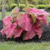 White Queen’s broad, frosty white leaves look like the wings of an exotic butterfly. The foliage typically emerges pink and gets whiter as it matures, highlighting the distinctive, scarlet red veins. A classic caladium that’s known for its good sun tolerance.