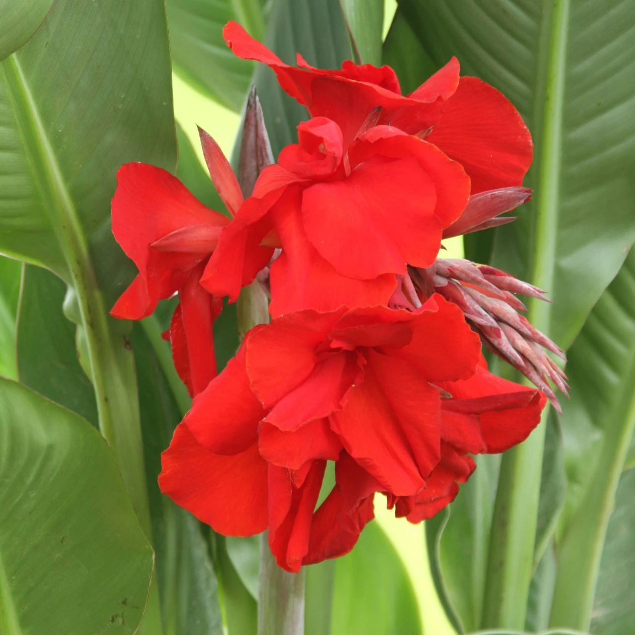 Deep green foliage and brilliant, scarlet-red flowers make this canna a real standout. Mr. President is an heirloom favorite that grows no more than 3 feet tall. Use it to add a tropical touch to annual flower beds and containers, and as a companion for taller varieties of cannas.