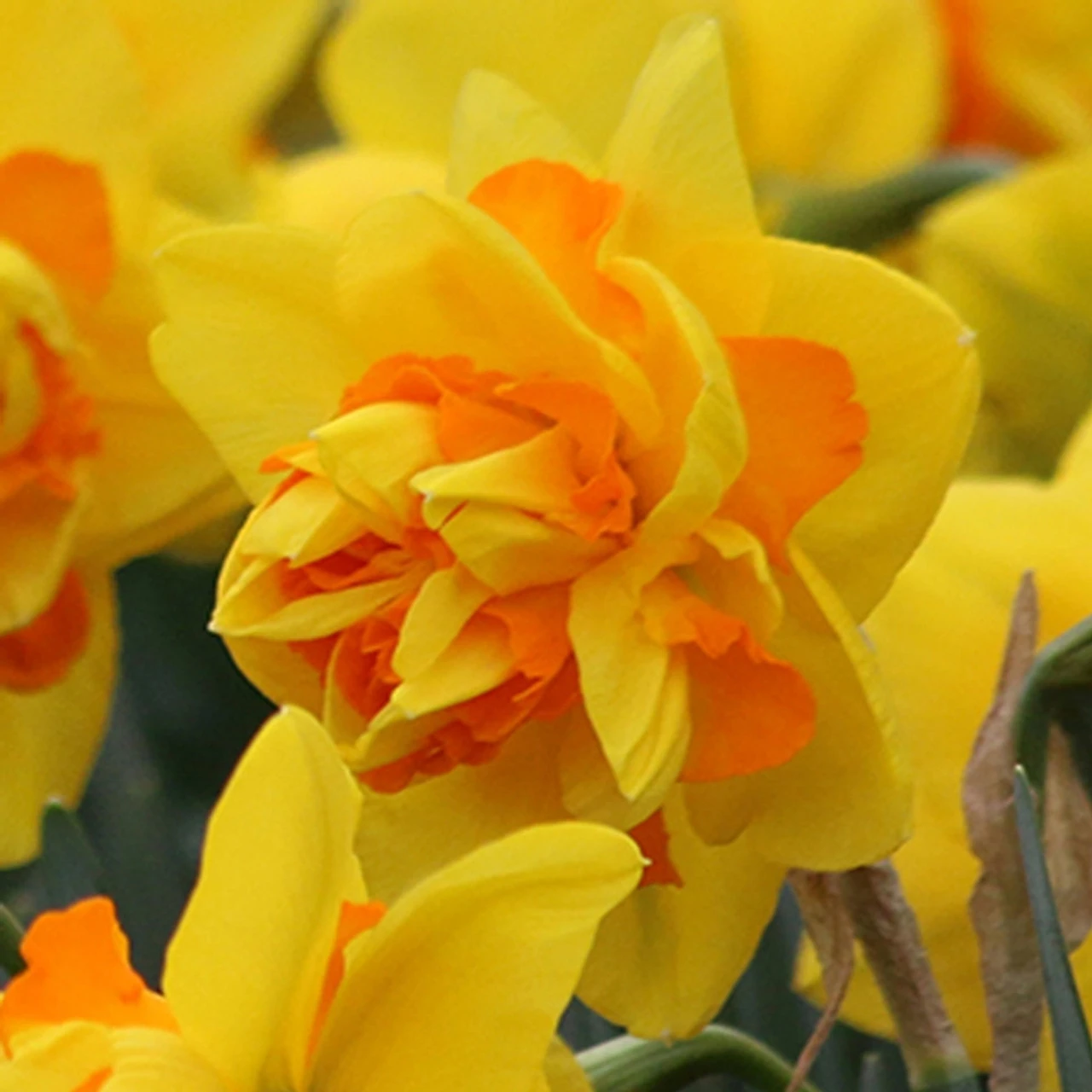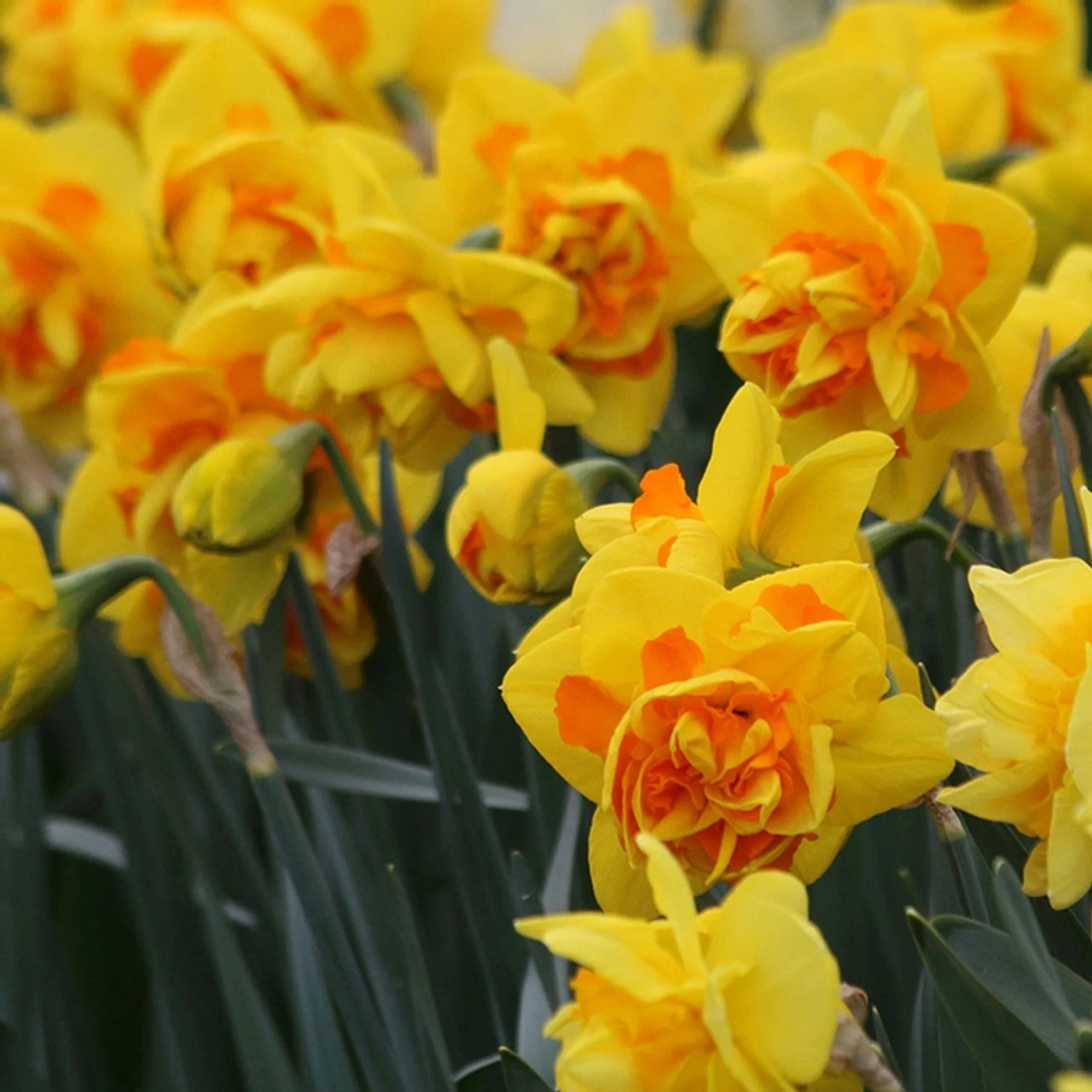 This daffodil turns heads wherever it’s planted. The large, upward-facing flowers are strong and substantial, with golden yellow petals and bright orange ruffles. Great curb appeal when planted on its own, La Torch also mixes well with other varieties. Blooms mid to late spring.