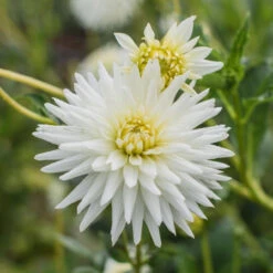 This lovely, snow white dahlia is a cool and refreshing sight on hot summer days. The spiky, cactus-style petals give it lots of personality, and the yellow-green center makes My Love a great mixer with both warm and cool colors. The flowers measure up to 5″ across.