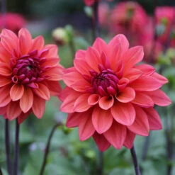 A modern dahlia that’s been bred for amazing color, sturdy stems and abundant flower production. The luscious, 4-5″ blossoms are a tropical blend of peach, mango and papaya with plum-purple highlights. Long, dark purple stems make American Dawn an outstanding cut flower. Guaranteed to be a star in your late summer garden.