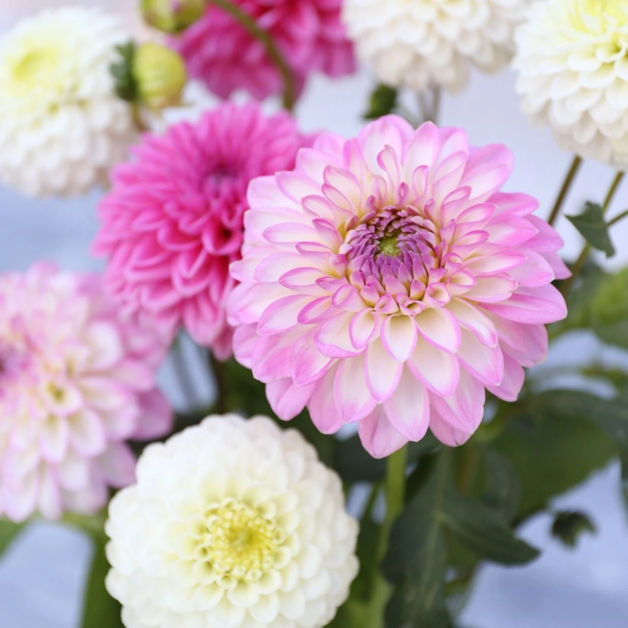 This two-tone dahlia is a pastel beauty with pure white petals with orchid pink tips. The 3″ blossoms are an ideal color and size for mixing with other cutting garden favorites such as cosmos, zinnias and snapdragons. At just 30″ tall, the bushy, compact plants rarely need staking.
