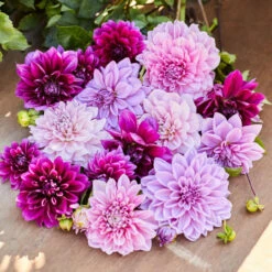 If you love purple, this dinnerplate dahlia collection is a must. Lilac Time, Thomas Edison, and Lavender Perfection are three of our top-selling varieties, loved for their enormous flowers and reliable performance. You’ll feel like a floral designer, creating lush, color-coordinated bouquets for your home and to share with friends.