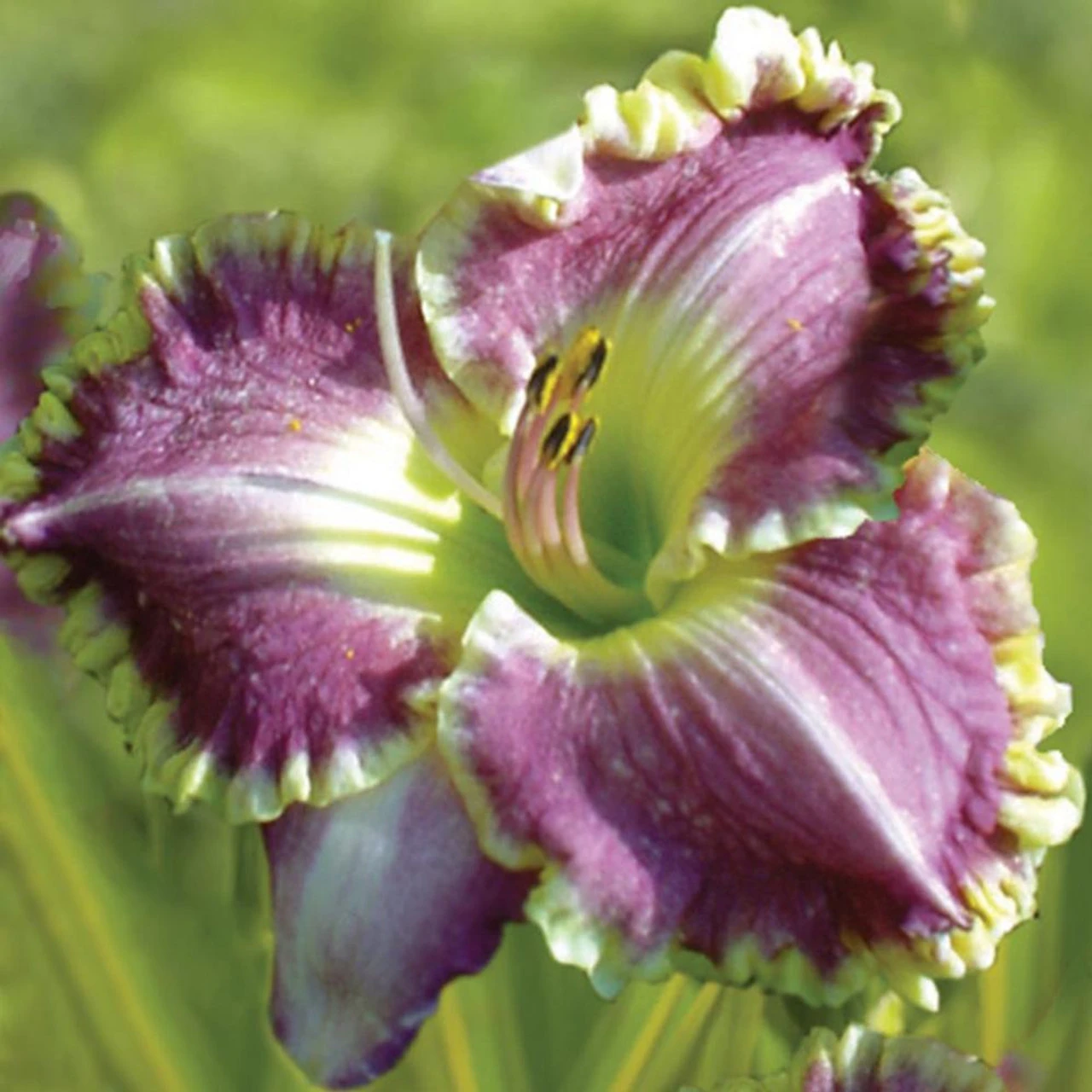A compact, extra-fancy daylily that’s perfect for perennial gardens and containers. The flowers have wide, lavender-pink petals trimmed with yellow ruffles, and are lit up by a glowing yellow-green throat. Blooms midseason and reblooms on and off right until frost.
