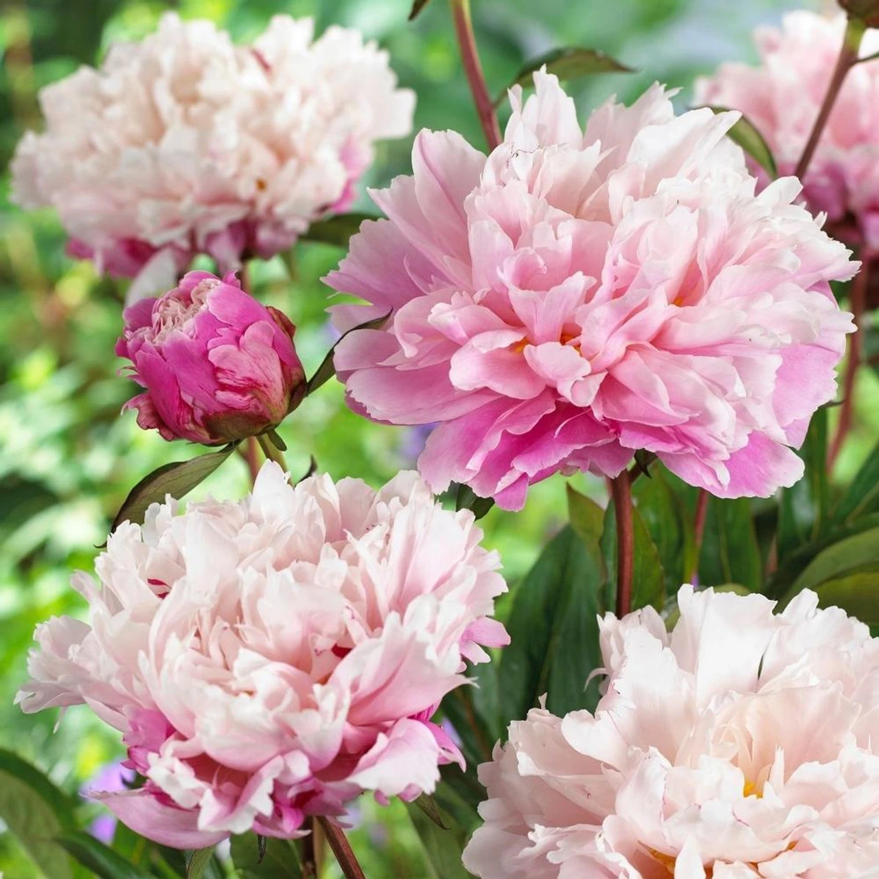 The flowers of this lovely, two-tone peony feature fluffy white centers and rose-pink outer petals. As the blossoms mature, they warm to a peachier hue. With its long stems and wonderful fragrance, this peony is an excellent cut flower.