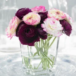 This high style combination pairs frosty white with rich, burgundy-grape. Picoteed edges tie the two varieties together perfectly. As with all ranunculus, the plants grow well in containers, are deer resistant, and have a long vase life. Note that in areas with mild winters (zones 8-11), ranunculus are planted in fall for early spring flowers. The plants will not survive freezing temperatures, so be sure to provide protection from extreme cold. In zones 4-7, ranunculus should be planted in early spring for summer flowers.