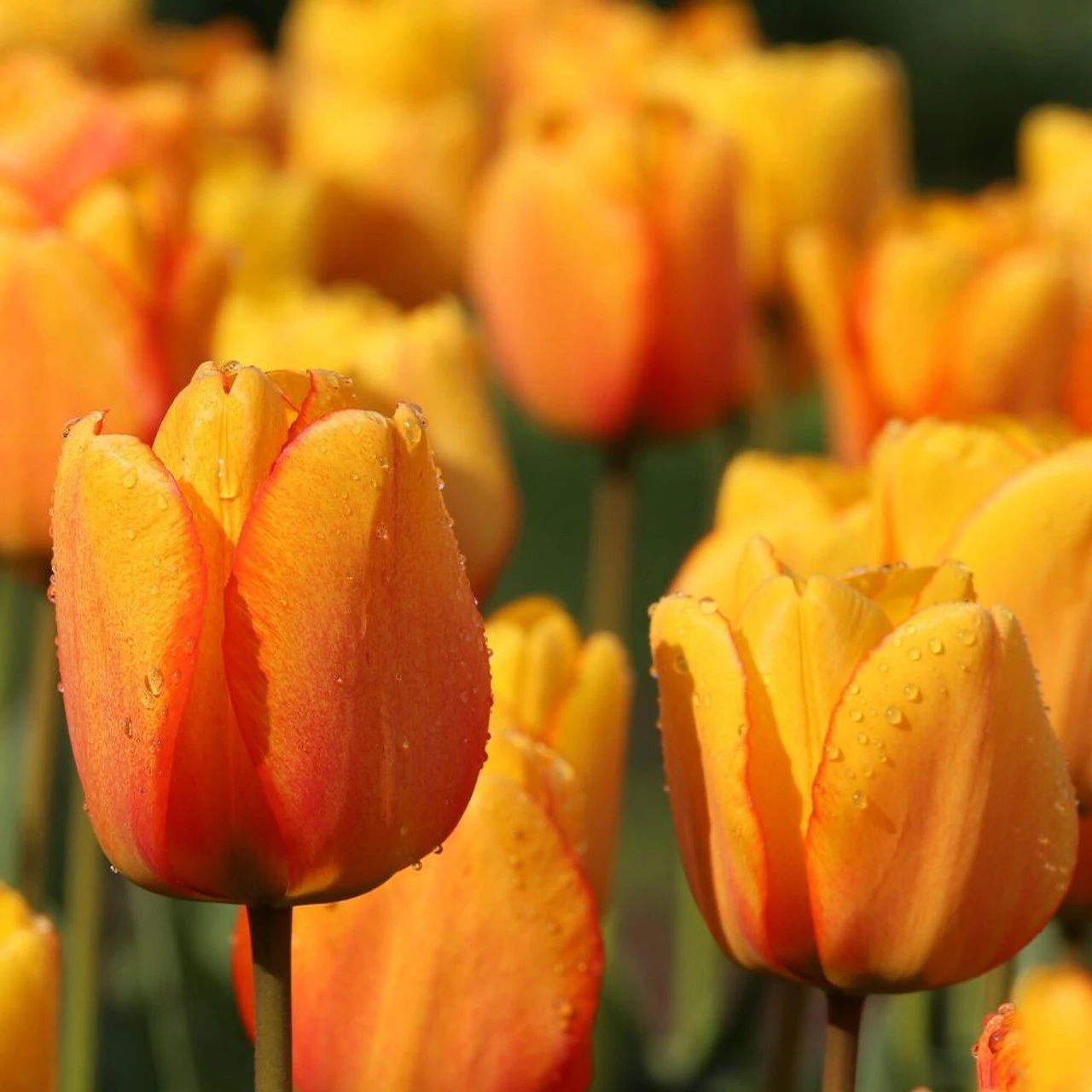 Like all Darwin hybrids, Blushing Apeldoorn is known for its extra-large flowers and bold color, which is a sunny blend of yellow, gold, orange and red. These tulips are a popular choice for mass plantings. They harmonize beautifully with solid reds and yellows. Buy in bulk and save.
