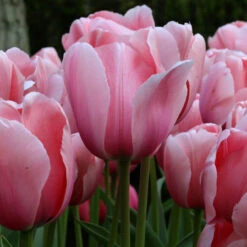 All Impression tulips are impressive, but we think you’ll agree that Salmon Impression is a cut above. The flowers are apricot when they first open, and gradually mature to an ethereal shade of shell pink. The blossoms grow larger day by day, until they will completely fill your cupped hand. Gorgeous planted in large drifts and stunning in a vase.