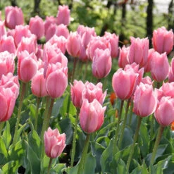 A bright, lipstick pink tulip with a lavender sheen. Like other Emperor tulips, Albert Heijn is big, early and weatherproof. Perfect for planting along a walk, at the front of flower beds or in containers. The blossoms open wide on sunny days.