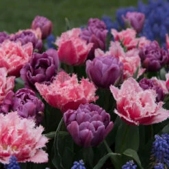Double fringed tulips are new to the market and we are excited to be offering one of the best varieties. Queensland is a confection of candy-pink petals with sugar-white fringe. It’s an attention-getter in the garden and is an outstanding cut flower. Great for containers, too. A lovely partner for double late tulips Aveyron and Mount Tacoma.