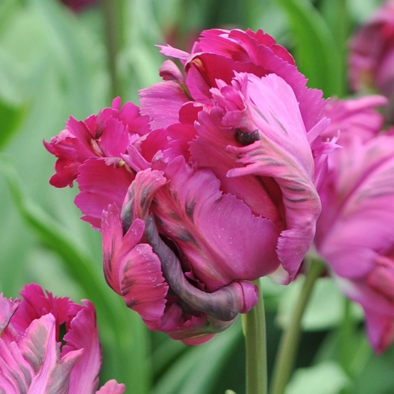 This fanciful parrot tulip is guaranteed to get attention. Negrita Parrot’s flowers are a delicious swirl of raspberry and plum. As the blossoms mature, the deeply fringed petals twist and turn like flames. Pairs beautifully with other late blooming tulips such as Negrita Double.