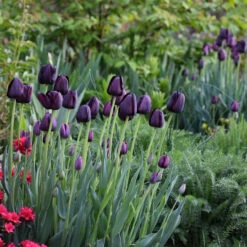 Close out the tulip season with a dramatic planting that features this dark and sultry beauty. On the outside, Queen of Night’s petals are deep maroon with a dusky blue sheen. Inside, they’re warm, wine red. Introduced in the 1940s, this variety is consistently one of the world’s most popular tulips.