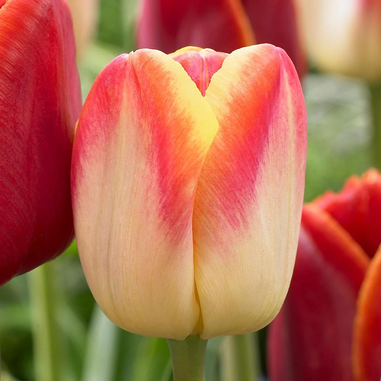 This tulip is one of the brightest we’ve seen. Its big yellow petals are flushed with scarlet red, and together they deliver a big punch of spring color. Plant Candy Corner on its own, or mix it with solid red and solid yellow tulips for a professional-looking combination.