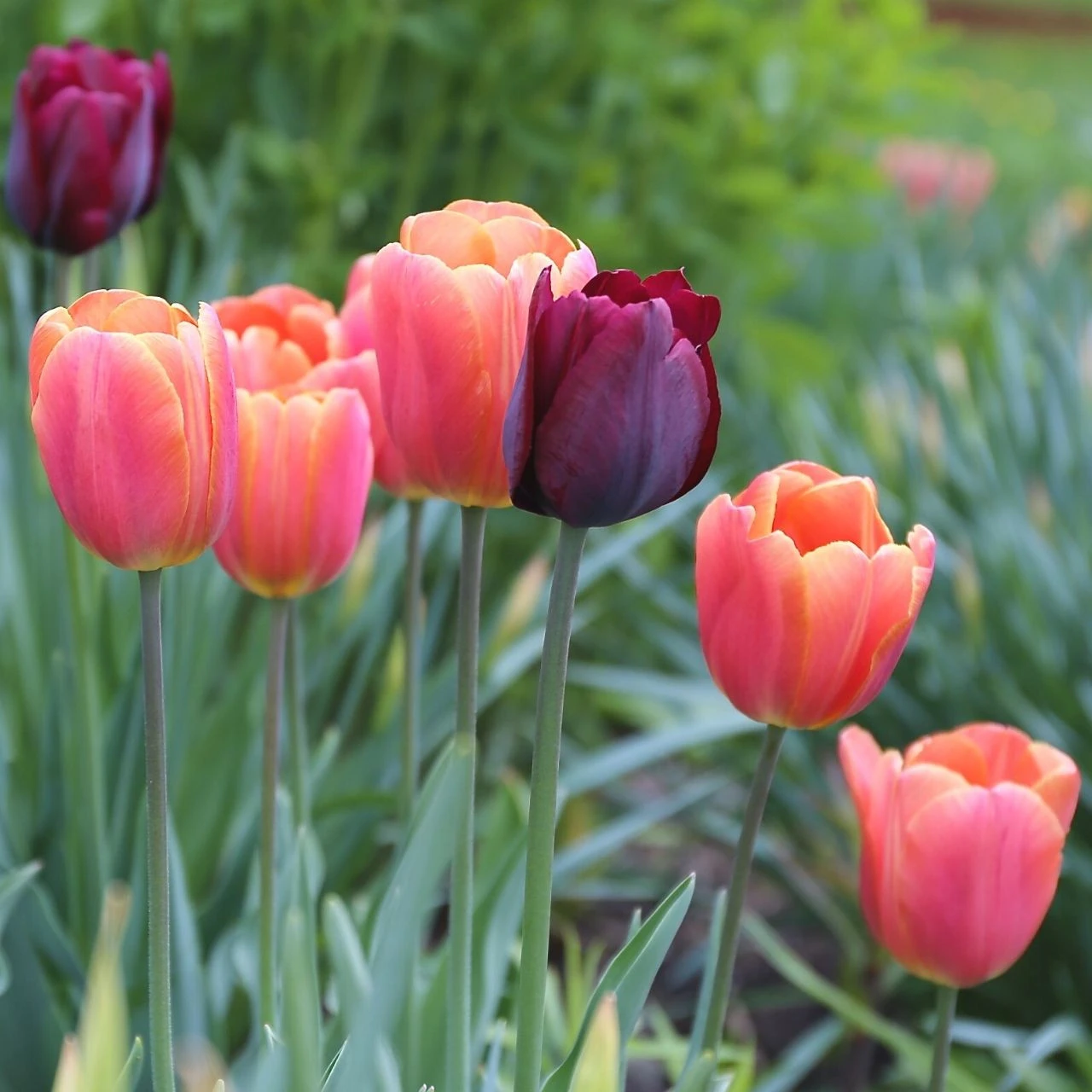 Jimmy’s big, mango-orange flowers are suffused with rose and tipped with gold. The colors change, depending on the light, which makes this tulip fun to watch. It’s a good companion for almost any other color, from pink and yellow to purple and blue. Sturdy, long-lasting blooms. A proven performer, first introduced in 1966 by Jan and Adrian Van Hoorn