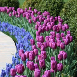 If you love purple, don’t miss out on these striking, mid-season tulips. Purple Flag’s blue-violet flowers are large and have a nice shape. They are flashy companion for bright yellow or orange tulips and are lovely paired with pastels. Excellent cut flowers, too.